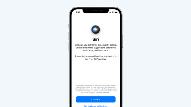 - After you log in, set up Siri. Tap 'Continue'. After this, speak a few sentences so Siri recognizes your voice.