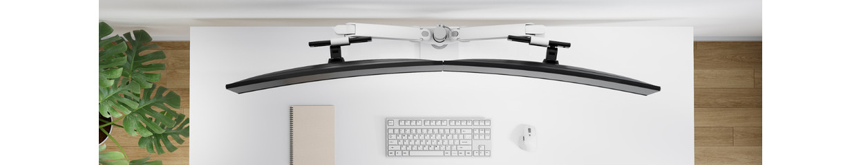 The NEXT One monitor arms offer a solution for every screen size, from 17 inches to 49-inch curved and ultrawide monitors. Larger monitors often weigh over 10kg and have a different tipping point. With the NEXT One monitor arm, this isn't a problem thanks to the reinforced VESA mount and gas spring for smooth adjustability in height. This way, you won't have to use much power and can always place the screen at the ideal height. These arms support sizes up to 49 inches and weights up to 18kg. Do you have a curved screen? It can weigh up to 15kg. There are also different models available for dual monitors, even up to 34 inches and suitable for curved monitors.