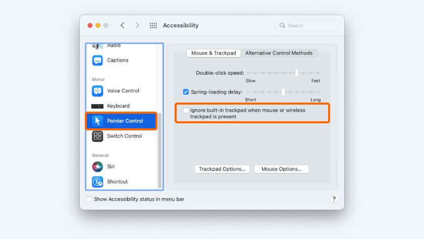 - Check if there's a checkmark in front of 'Ignore built-in trackpad as mouse when mouse or wireless trackpad is present'.