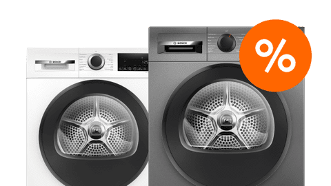 Get a new Bosch washing machine and dryer set and save even more energy. Choose a Bosch washing machine with an A-10% energy label, for example. This can save you up to € 245 of energy costs during its lifespan. With a Bosch B heat pump dryer, you can save another € 280 over its lifespan. Take the load capacity of the washing machine and dryer set into account. With 9kg, you can wash and dry a large stack of bedding at once.