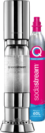 With the SodaStream enso Premium, you get a stylish sparkling water maker. Thanks to the sleek silver design, the water maker looks great on your counter. The sparkling water maker has an unlimited number of sparkling water levels. For example, you can make strong or light sparkling water with a push of the button. The lid and the bottom of the SodaStream bottle are made from stainless steel material. Thanks to this, it's extra sturdy and durable and it lasts longer. You can easily twist the bottom off the bottle. This way, you can clean the bottle quickly and easily. The sparkling water maker doesn't need power. That means you use less energy and there's no cord on the counter.