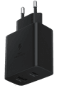 Charge 2 devices extra fast at the same time with the Samsung Super Fast Charging Charger with 2 USB Ports 35W. This charger has 2 fast charging ports and is suitable for fast charging all sorts of Samsung smartphones and tablets. With the USB-A fast charging port, you can fast charge all Samsung smartphones. After half an hour of charging, your empty battery is up to 40%. Use the USB-C Super Fast Charging port to charge your Samsung S series smartphone and S series tablet even faster. Half an hour of charging gets you up to about 60% for smartphones. The Samsung A52 and A72 also support extra fast charging. In addition, you can fast charge all smartphones and tablets that support Power Delivery. Some examples are iPhone and iPad models, but also Sony and Xiaomi devices. Keep in mind that the charger charges slightly slower when you charge 2 devices at the same time. Choose the Samsung 65W charger to charge multiple devices at maximum speed. A plastic cable is included with your smartphone. Choose a charger with a sturdy nylon cable if you want it to last longer.