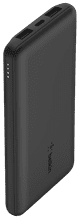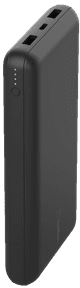 You can charge the batteries of 3 smaller devices at the same time with the Belkin Power Bank 10,000mAh Black. You can easily take this compact power bank with you in your pocket or bag. Connect up to 3 devices to the power bank, like your smartphone, earbuds, and smartwatch. This Belkin power bank has 10,000mAh capacity. That's enough to fully charge your smartphone about 2 times. That means this power bank isn't ideal for charging 3 smartphones at the same time. Choose the version with 20,000mAh capacity if you want that. Keep in mind that charging takes longer if you connect several devices at the same time. Choose a power bank that supports fast charging if fast charging is important to you.