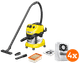 Get a construction vacuum with a supply of vacuum cleaner bags with the Kärcher WD 4 P S V-20/5/22 + Kärcher Vacuum Cleaner Bag for WD 4/5/6 (4x). You receive 5 bags in total to vacuum dry dirt with. Without a bag, you can also vacuum water. The canister fits up to 20L of dirt of liquid. Connect tools to the socket in the construction vacuum so vacuum dust directly while you work. Have dirt in a hard-to-reach place? Easily blow this away with the blow function. You can hang the vacuum hose on the vacuum to save space. The construction vacuum also lasts a long time thanks to the stainless steel canister.