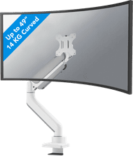 Werk ergonomisch met de Neomounts NEXT Core DS70PLUS-450WH1 Monitorarm Wit. Deze monitorarm is geschikt voor curved ultrawide schermen tot 49 inch. Hierdoor houd je jouw bureau opgeruimd. Het maximale draagvermogen is 18 kilogram. Daarnaast verstel je de monitorarm vloeiend door het gasveermechanisme. Zo gebruik je geen kracht. De DS70PLUS-450WH1 is gemaakt van metaal, waardoor hij langer stevig blijft. Je bevestigt de beeldschermen gemakkelijk door de Quick-release VESA standaard. Deze monitorarm heeft een kabelmanagement systeem, zodat je geen rondslingerende kabels op je bureau hebt. Je kantelt en draait de monitorarm, zodat je de beste kijkhoek maakt voor jouw schermen. Daarnaast verstel je de monitor traploos tot 55,5 centimeter in de hoogte, waardoor je altijd de juiste ergonomische houding hebt.