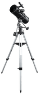 Bekijk verre planeten en sterren met de Delta 1000 Spiegeltelescoop. Deze telescoop heeft een vergroting van 50 tot 500x met een vaste brandpuntsafstand van 1.000 millimeter. Hierdoor zoom je ver in. Zo onderzoek je de ringen van Saturnus en spot je vergelegen sterren. Deze telescoop gebruikt geen lens, maar juist meerdere spiegels. Hierdoor zie je realistische beelden zonder kleurvervorming. Met de equatorial mount volg je hemellichamen zonder moeite. Hiermee houd je makkelijk rekening met de draaiing van de aarde en verlies je bijvoorbeeld een komeet niet uit het oog. Let op: gebruik de telescoop nooit overdag. Je riskeert permanente oogschade als je met de telescoop in de zon kijkt.