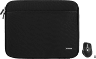 Met de BlueBuilt Laptophoes breedte 40 cm 17 inch Zwart + Maximus Muis neem je jouw laptop en muis veilig en comfortabel mee. De stoffen sleeve beschermt je 40 centimeter brede laptop tegen krassen en lichte stoten. In het accessoire vak berg je de Maximus muis en je kabels op, zodat je alles bij de hand hebt. Dankzij de dubbele ritssluiting pak je jouw laptop snel uit de hoes, terwijl je de sleeve in je tas laat zitten. De ergonomische vorm van de muis ondersteunt je hand en pols, waardoor je prettig werkt tijdens lange dagen. Je verbindt de muis via bluetooth of de usb ontvanger met meerdere apparaten en wisselt snel tussen je laptop en desktop. Met de smart flying en horizontale scrollwielen navigeer je snel en soepel door pagina's en spreadsheets.