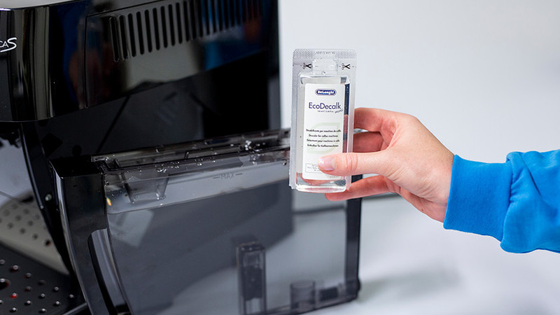 Op deze pagina laten we zien hoe je jouw De'Longhi Magnifica ontkalkt. Ontkalken is belangrijk, omdat je hiermee de levensduur van jouw apparaat verlengt. Je voert deze klus ongeveer elke 2 tot 3 maanden uit. Hiervoor geeft het apparaat vanzelf een seintje. Gebruik wel het De'Longhi waterfilter, want deze voorkomt voor een groot deel kalkaanslag. Zonder waterfilter ontkalk je jouw koffiemachine een stuk vaker. Onderstaande instructies gebruik je voor de De'Longhi Magnifica ECAM 20.110.B, ECAM 22.110SB, ECAM 21.117.B en de ECAM 250.23.SB.