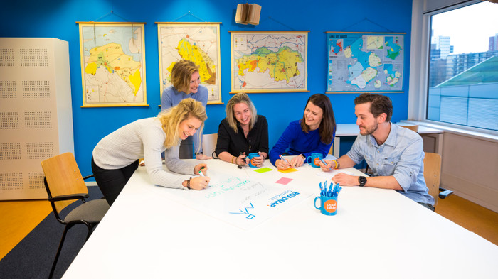 Een fijne combinatie van werken op kantoor en vanuit huis, maar het liefst zien we je zo veel mogelijk op kantoor. Natuurlijk zorgen we dat je thuis een top werkplek hebt. Inclusief bureaustoel, laptop en blauwe slingers.